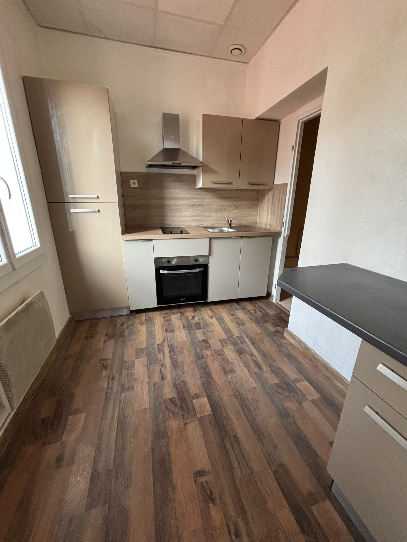 Dans un petit immeuble au calme, ce studio de 24M2 se compose d'une pièce vie, d'une cuisine meublée et équipée (plaques de cuisson, hotte aspirante, four, réfrigérateur et congélateur), une salle d'eau et WC (emplacement réservé pour le lave-linge). Facilité de stationnement.